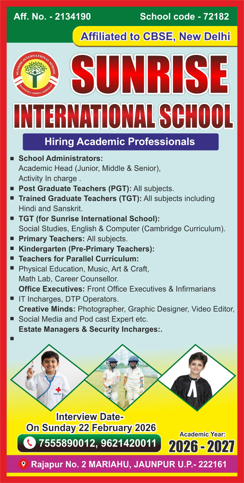 Welcome To Sunrise International School, Rajapur No - 2, Mariahu, Jaunpur...